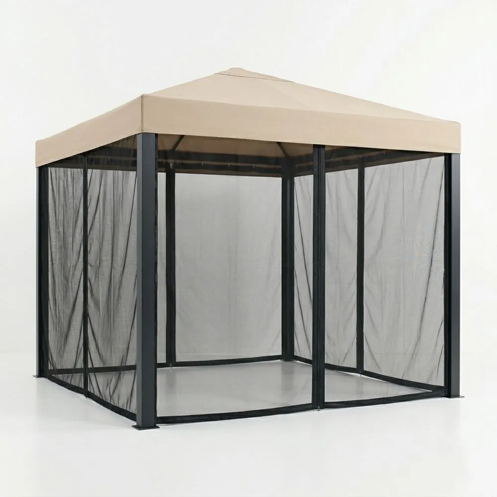 Gazebo in acciaio beige con rete in poliestere