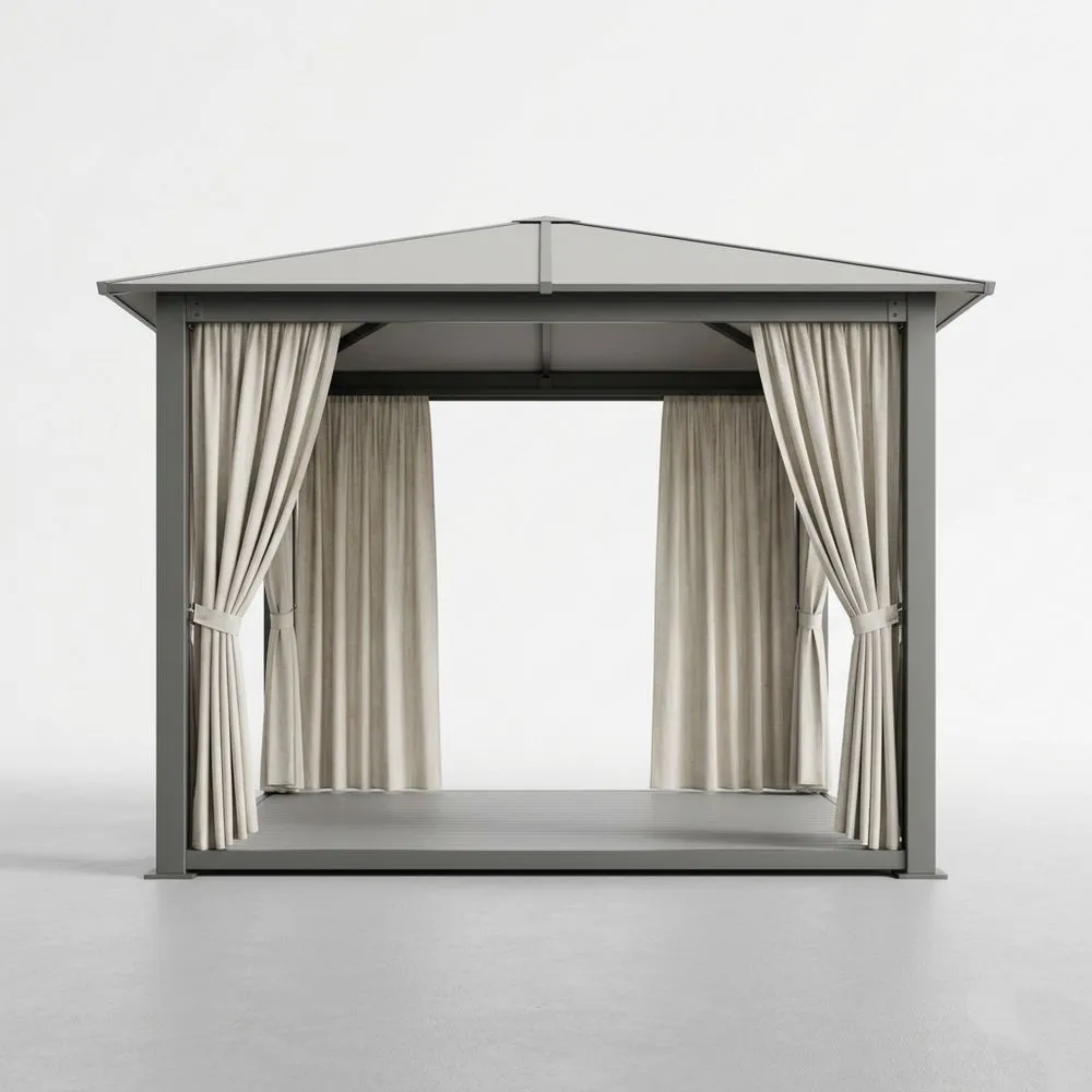 Gazebo in alluminio con tende color sabbia